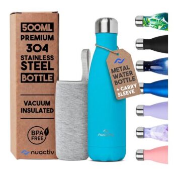 Teal Vacuum Insulated 500ml Water Bottle with Carry Sleeve