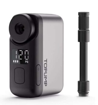 TOPUMP TB2 PRO is an ultracompact cordless electric tire inflator designed for cyclists who want fast, accurate inflation on the go. Despite its tiny 124g body, it delivers up to 120 PSI, making it suitable for road, gravel, and MTB setups. The 450mAh 7.4V battery supports USBC fast charging, reaching full charge in about 30 minutes, and can inflate a 70025C road tyre to 110 PSI twice on a single charge. The digital display shows realtime pressure and target PSI, while auto shutoff ensures precise inflation without overpressurising. A smart memory function recalls your last PSI setting for quick repeat use. Compatible with Presta & Schrader valves, it includes an integrated hose for easier attachment. Ideal for commuting, long rides, and emergency roadside fixes, the TB2 PRO offers a reliable, pocketsized alternative to CO₂ cartridges and bulky manual pumps.
