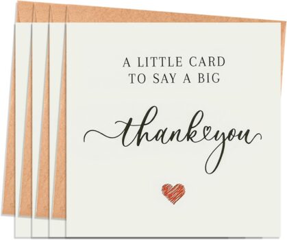 Complete Thank You Cards Multipack This thank you cards multipack includes 30 thank you cards and 30 matching kraft envelopes. Cards measure 12.5 12.5 cm, with envelopes sized 13 13 cm for a perfect fit. No need to buy envelopes separately a convenient thank you cards pack for everyday use.
