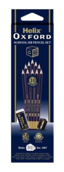 Set contains 10 HB pencils, 1 sleeved eraser and 1 plastic pencil sharpener