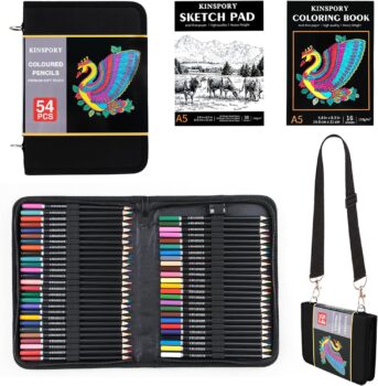 KINSPORY 54PCS Coloring Pencils with 3.0mm Soft Leads, 50-Sheet 3-Color Sketch Book, Sketching Kit with Adjustable Shoulder Strap – Art Set Gift for Adults Artists Beginners Teens Girls Boys