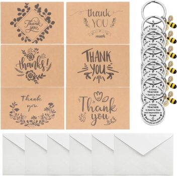 Thank You Teacher Gifts Keyring, 6 Pcs Thank You Cards Thank You Cards Multipack with envelopes, Stainless Steel Inspirational Keychain for Thanksgiving Christmas, for Birthdays Wedding Graduation