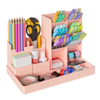 Withosent 5-Piece Modular Pen Holder Desk Organizer (Pink)