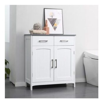 Bathroom Free Standing Storage Cupboard W/ 2 Drawers 2 Doors