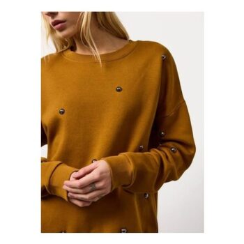 Dark Yellow Studded Relaxed Crew Neck Sweatshirt (FREE C&C)