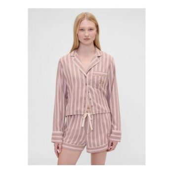 Gap X Summer Fridays Brown Striped Flannel Long Sleeve Pyjama Top