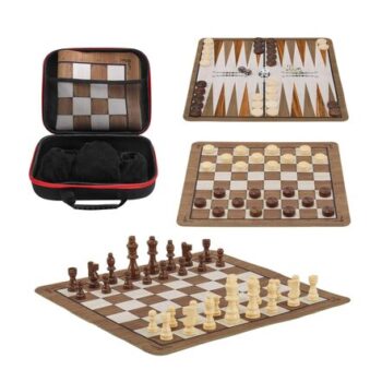 3-in-1 Travel Chess, Backgammon & Checkers Set with Mousepad