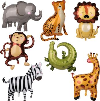 7pcs Jungle Safari Animal Balloons – Various Animal Theme Party Balloons for Kids Zoo Party Decoration Supplies – Monkey, Elephant, Zebra, Leopard, Crocodile, Giraffe Shaped