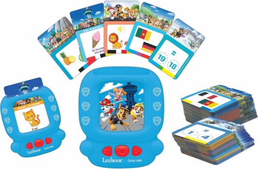 LEXIBOOK, Quizz Hit, Paw Patrol, Bilingual interactive card reader, English/French, 150 double-sided educational cards, educational quiz & flashcard machine, Red/Blue, JCR10PAi1