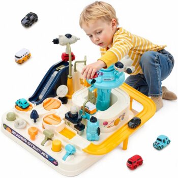 Fun & Skill-BuildingThis car track toy features 6 buttons, 8 challenges and 4 mini cars. Kids control the car by pressing, turning or pulling knobs to overcome obstacles and pass levels, boosting brain activity and motor skills while having fun.