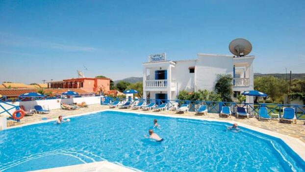 Little ones are well-looked after here they get their own splash pool and a play area. Food-wise, the restaurant deals in Greek and international fare.