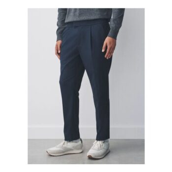 Navy Blue Slim Fit Smart Stretch Trousers with Internal Drawcord
