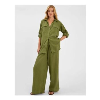 Wide Leg Beach Trousers Green